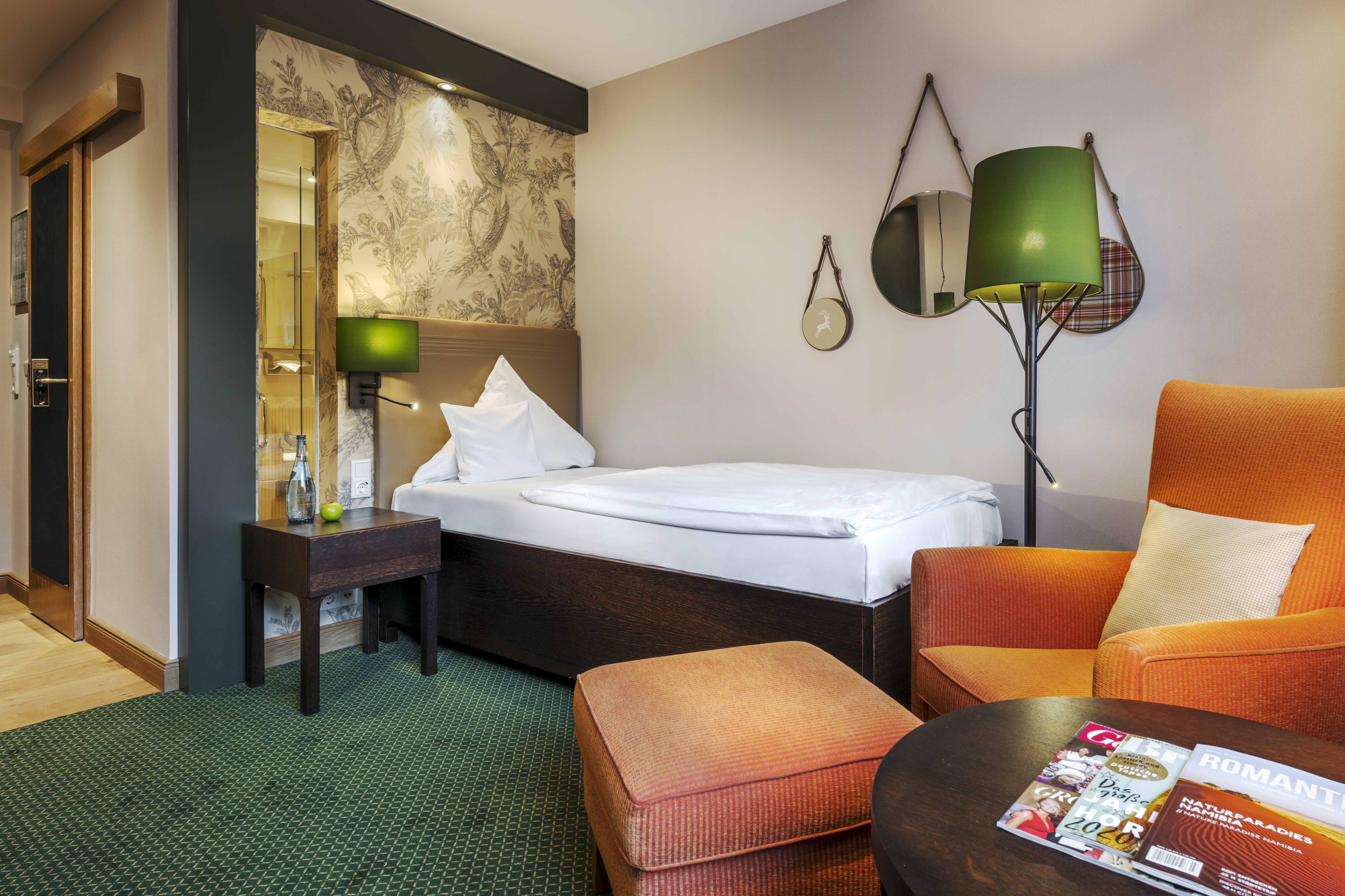 Klein und so schnuckelig. Für alle, die die Großzügigkeit des Jagdhaus Eiden schätzen, aber nur einen kleinen persönlichen Rückzugsort (ohne Balkon und Terrasse) benötigen. Für alle, die keinen besonderen Ausblick brauchen, da Sie schon den Weitblick haben. Unser Einzelzimmer Economy ist ganz viel Eiden auf kleinem Raum, eben ein kleiner Rückzugsort zum Wohlfühlen. |